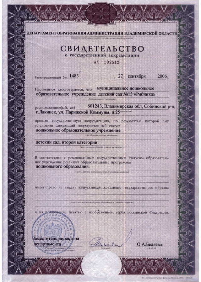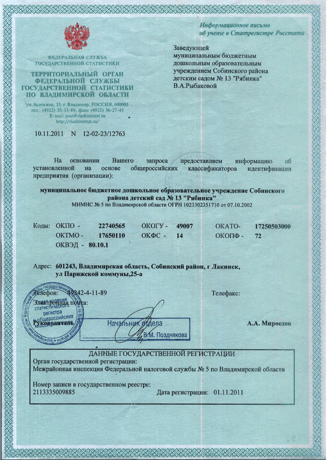МБДОУ Собинского района детский сад № 13 "Рябинка" | |