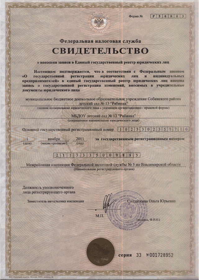 Свидетельство о внесении